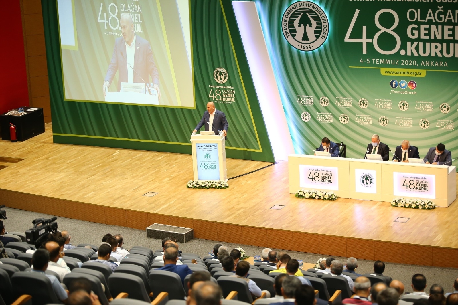 Orman Mühendisleri Odası Genel BaÅŸkanı Hasan Türkyılmaz, 48. OlaÄŸan Genel Kurulu açılış konuÅŸmasını yaptı. Türkyılmaz konuÅŸmasında; Yeni dönemde de güzel iÅŸlere hep birlikte imza atacaklarına olan inancındayım. Bir odanın üzerine düÅŸen en önemli vazife meslektaÅŸlarının sorunlarına çözümler getirmesidir. Bunu da yönetim süresince yaptık ve yapmaya devam edeceÄŸiz. BulunduÄŸumuz yer, herkesi kucaklayıcı ve kimseyi ötelemeye hakkı olmayan bir sorumlulukla görev ifa edilecek yerdir. MesleÄŸe katkı saÄŸlayacak her görüÅŸ baÅŸ tacımızdır. Ormana sevdalı her meslektaşımız bizim için azami derecede önemlidir, zira görevleri kutsaldır. Alanında tek olan bu STK sizlerin de yardımı ve desteÄŸiyle bu vatana ve bu millete daha güzel hizmetlerde bulunacaktır ve bunu hep birlikte yapacağımızdan ben eminim diyerek kurulun hayırlara vesile olmasını temenni etti.