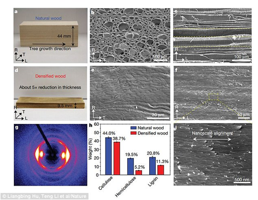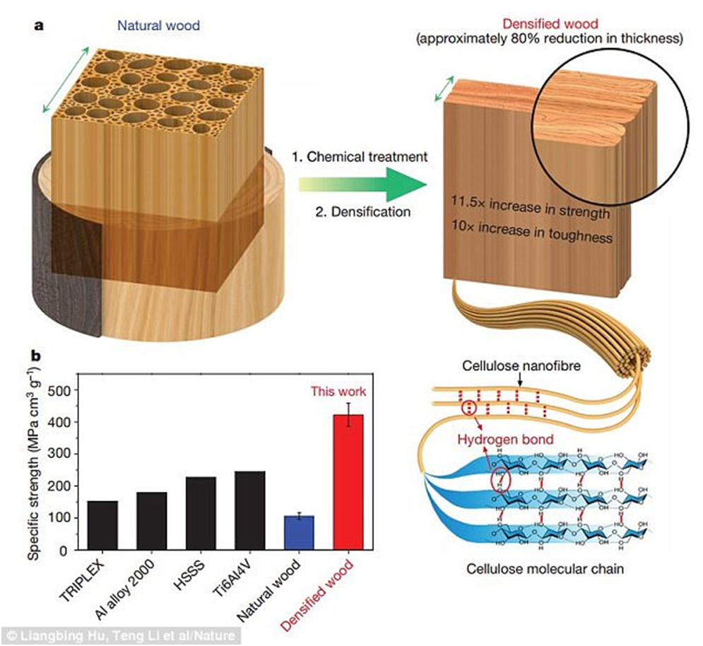Maryland Üniversitesi’nden mühendisler bu süper yoğunluğa sahip tahtayı yapmak için sıradan tahta yığınlarını, içerisinde sodyum hidroksit ve sodyum sülfat bulunan su bazlı bir çözelti içerisinde kaynatmışlar. Bu işlemle tahta içindeki organik bileşenler yok edilerek, tahta daha esnek ve sağlam şekle dönüşmüş. Araştırmacıların uyguladıkları işlem, ağaçtan kağıt elde etmek için uygulanan işlemle benzerlikler taşıyor. Daha sonra yumuşatılan tahtayı iki metal levha arasında sıkıştıran araştırma ekibi, Dünya atmosferinin elli katı yüksekliğinde bir basınç altında, 100 dereceye kadar ısıtmış.